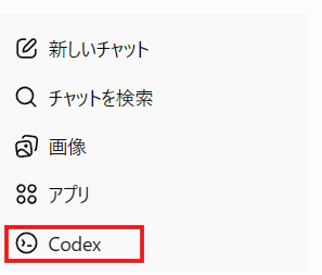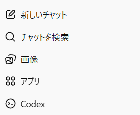 ChatGPTを開くと、画面の左側にいくつかのメニューが並んでいます。