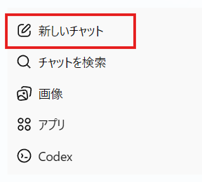 この「新しいチャット」は、新しい会話をスタートするためのボタンです。