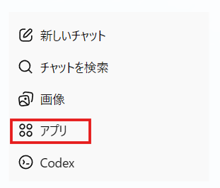 「アプリ」は、ChatGPTと連携した便利なツールが集まっている場所です。