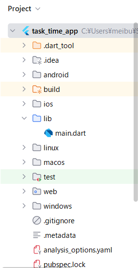 Flutterのプロジェクトには、最初から多くのフォルダが用意されています。